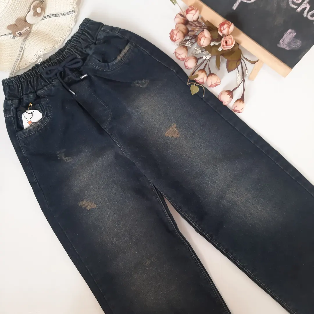 شلوار لی تنگ آبی سورمه ای سایه دار بچگانه