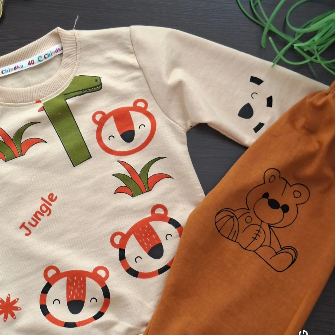 پـوشــاک بچــگانه بلوز +تاب+ شلوار جیب دار سایز ۴۰ و ۴۵
